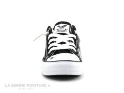 Cette chaussure de sport fille est en simili cuir blanc aspect grainé, avec du rose et une partie rose brillant à l’arrière.