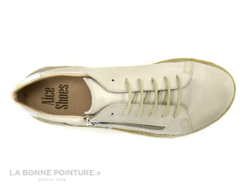 Les chaussures basses Femme en cuir beige Alce Shoes 9156, des derbies zippés tout en cuir au très bon rapport qualité / prix !