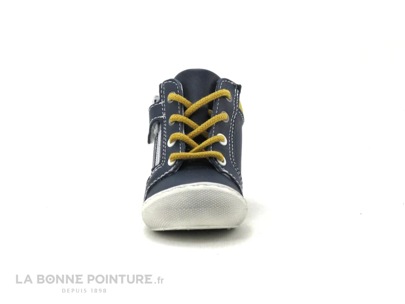 Les chaussures montantes en cuir bleu marine et jaune Bellamy Steve, des chaussure bébé très souples et fabriquées en France par le spécialiste des chaussures enfant Bellamy !