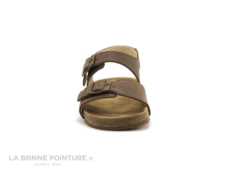 Cette sandale garçon Bopy est en cuir marron clair nuancé.