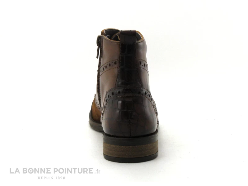Cette chaussure montante Folies Nyx combine cuir lisse, cuir velours et cuir effet croco, aux tons de marron.