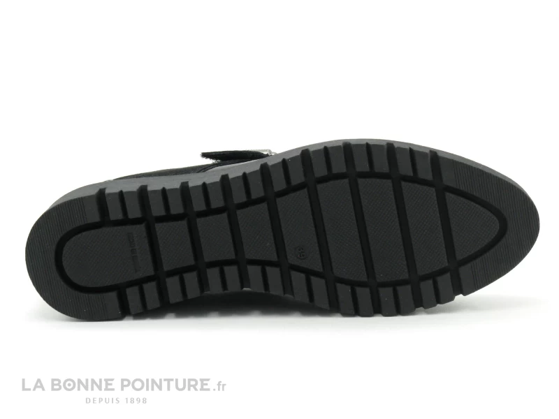 Cette chaussure Femme grande largeur est composée de cuir velours imprimé et de cuir verni aspect métallisé.
