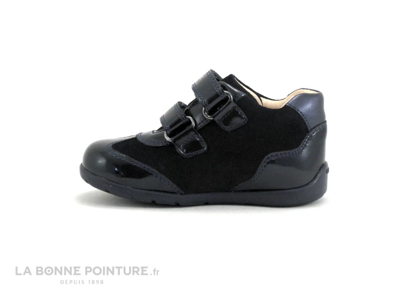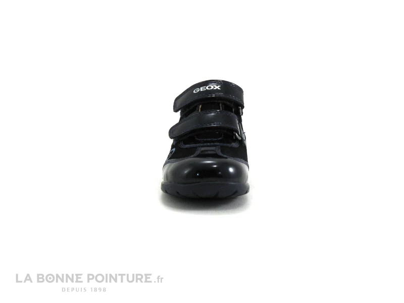 Ce bottillon premiers pas Geox est en cuir et matières synthétiques résistantes bleu marine.