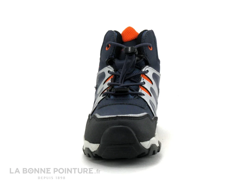 Cette chaussure montante garçon Geox Magnetar J263ZA est en textile et matiÚres synthétiques résistantes bleu marine, noir, argent et orange.