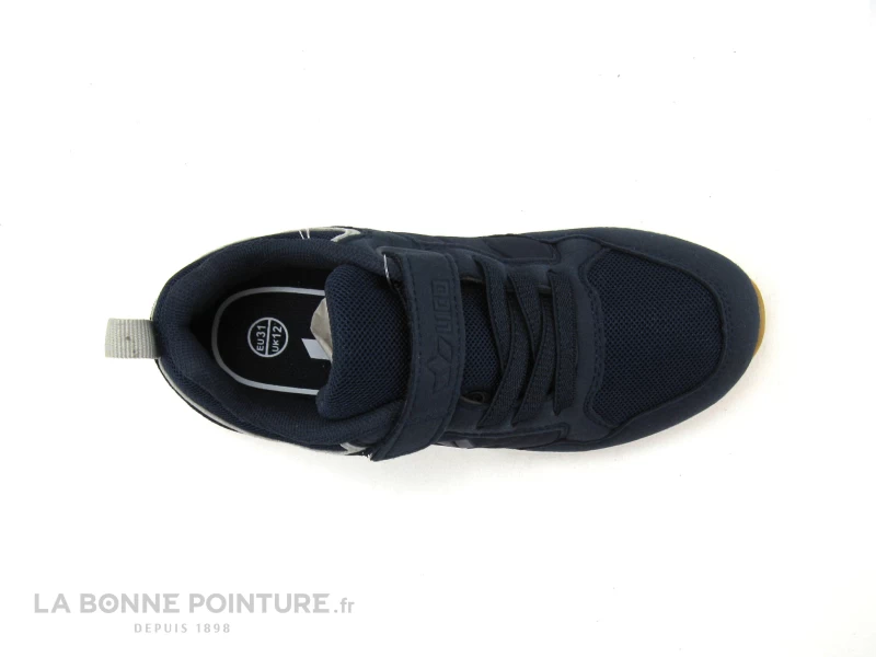 Cette basket garçon bleu marine pas chère est en textile et matières synthétiques, avec un peu de gris à l’arrière.