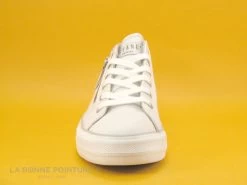 Cette basket basse Femme est en toile jaune aspect légèrement froissé, avec une petite partie marron camel sur la languette et à l’arrière.