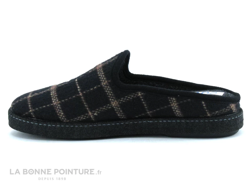 Confort et petit prix pour cette paire de pantoufles Homme noires à carreaux Ouf Bartoli !