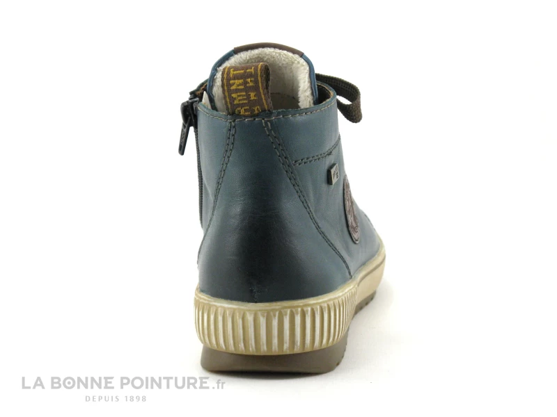 Un coloris mode et qui change un peu pour ces magnifiques baskets montantes Femme en cuir bleu pétrole / vert Remonte D0771-12 !