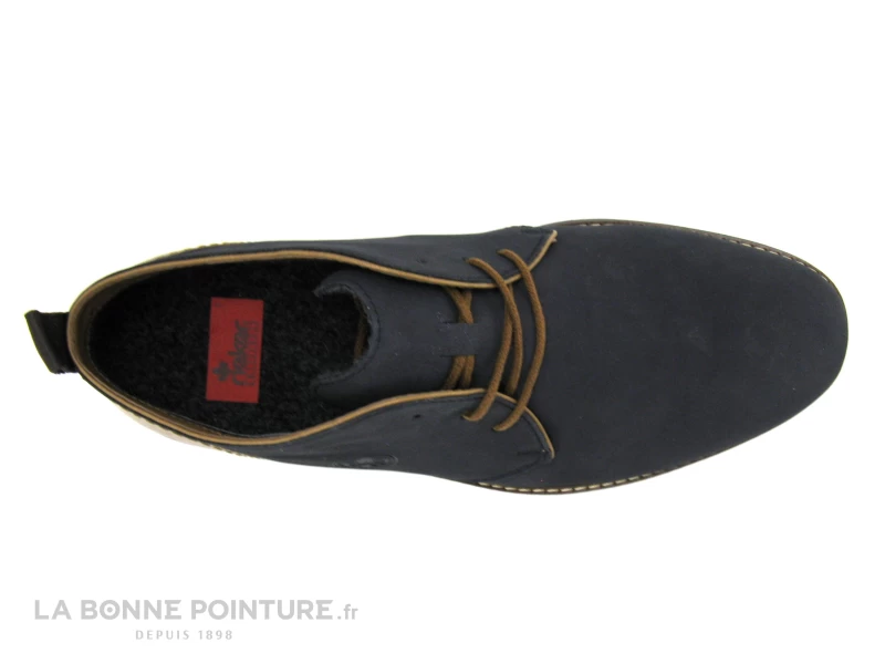 Ces beaux derbies montants Homme Rieker Antistress 14411-14 sont bleu foncé, avec un bel aspect velouté.