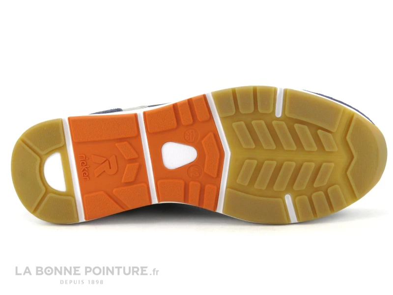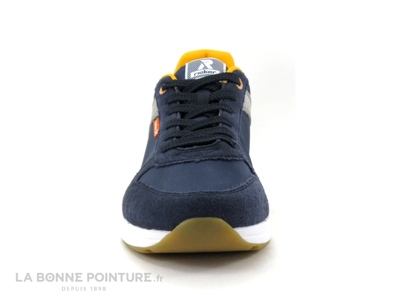 Cette basket de ville Homme Rieker est bleu foncé, avec un peu de gris et la doublure orangée.