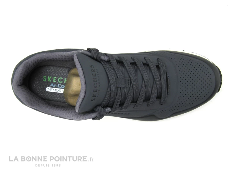 Fermeture des sneakers Skechers Uno Timeline avec le lacet plat gris traversant 5 oeillets.