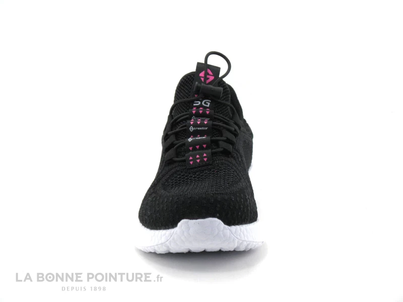 Cette basket slip-on Femme Streeter est en textile maille noir, avec un peu de rose.