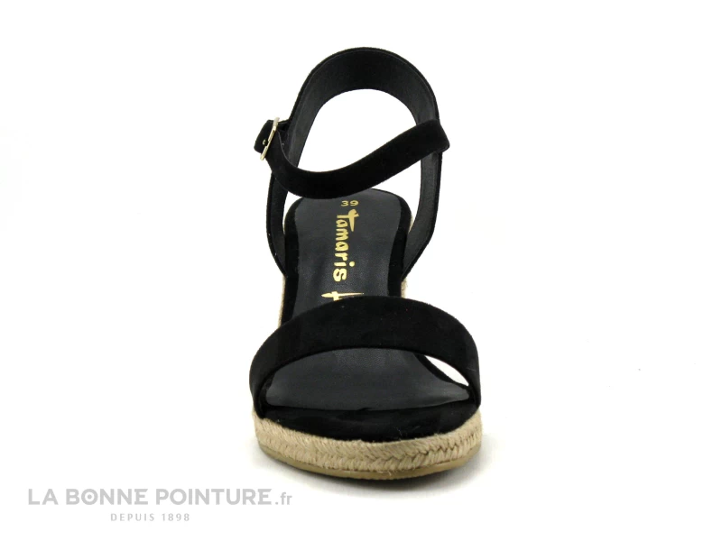 Ces espadrilles compensées noires Tamaris 28300 sont en textile velouté noir, avec la semelle revêtue de cordes tressées.