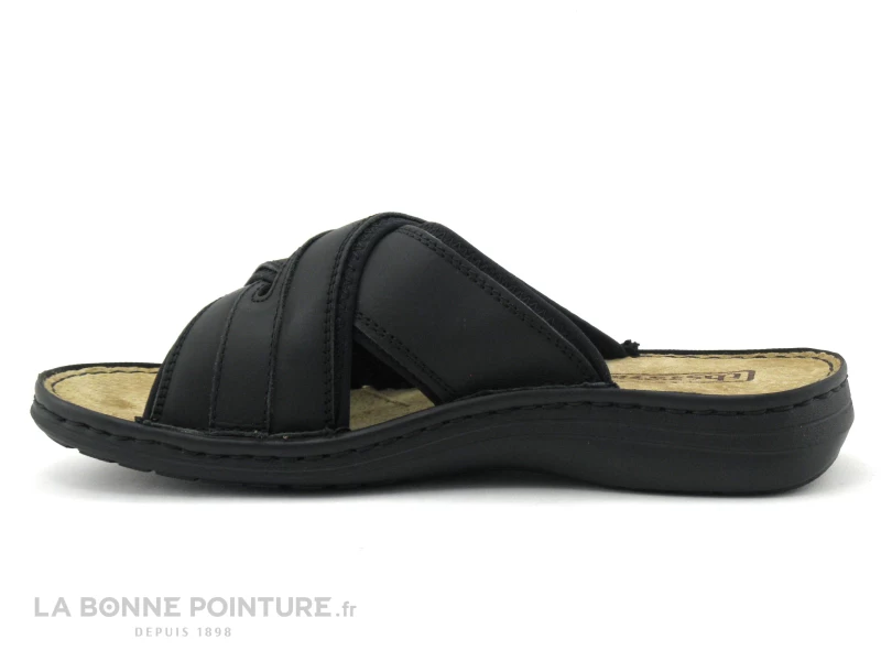 Cette mule TBS Homme est en cuir épais noir mat, composée de larges brides croisées.