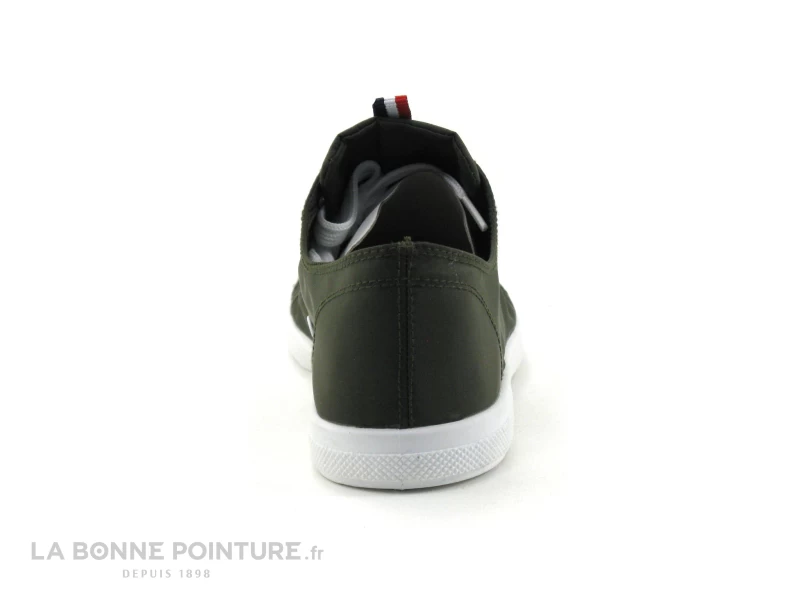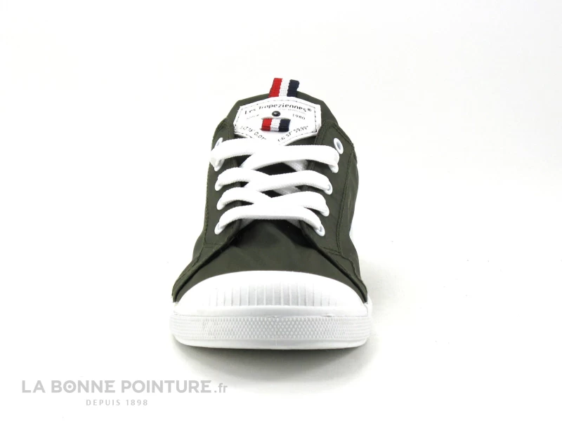 Cette basket Femme Tropézienne Chana 27829 est en tissu nylon vert kaki, avec un ruban tricolore sur la languette et un écusson marqué Les Tropéziennes.