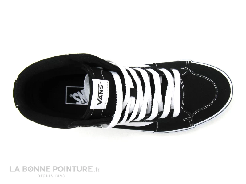 L’intérieur de la chaussure montante Van’s Filmore Hi Pla est en textile noir, avec une semelle matelassée.